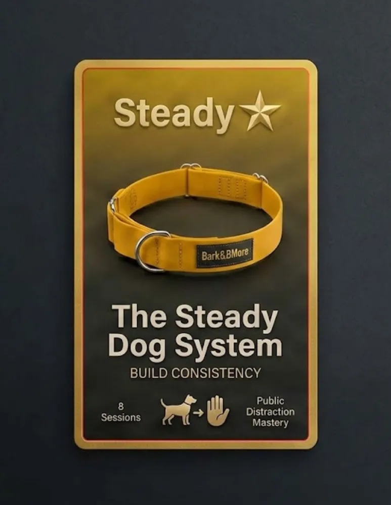 Most dogs don’t need a full reset — they need consistency. The Steady Dog System strengthens what’s already there and closes the gaps that cause unreliable behavior. Across six focused sessions, we tighten communication, improve public behavior, and build predictable responses so you can trust your dog in everyday situations.